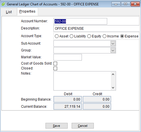 - Beginning Balance - Will show the opening balance of the account when it was created.